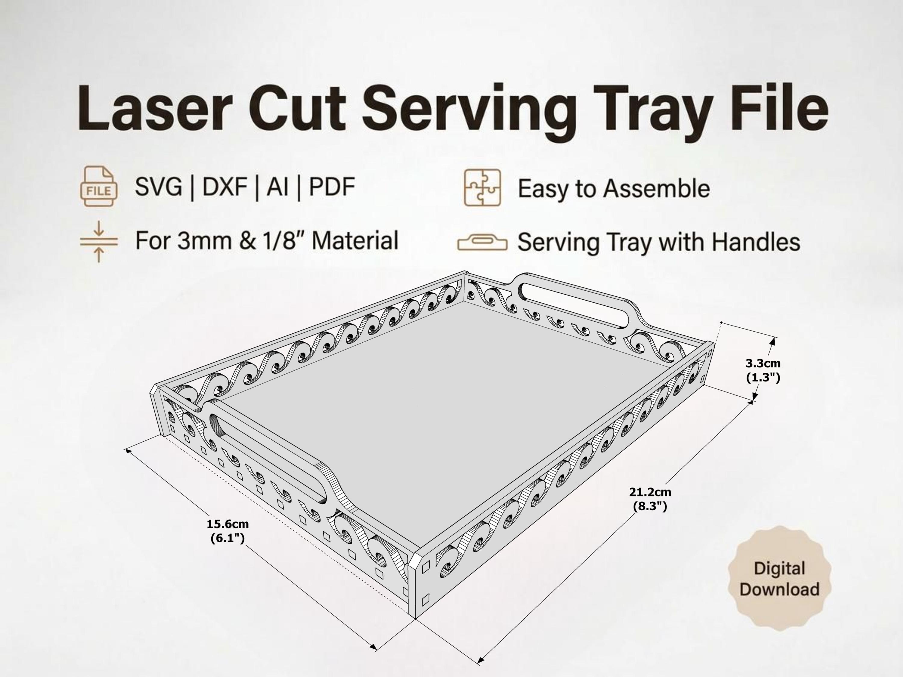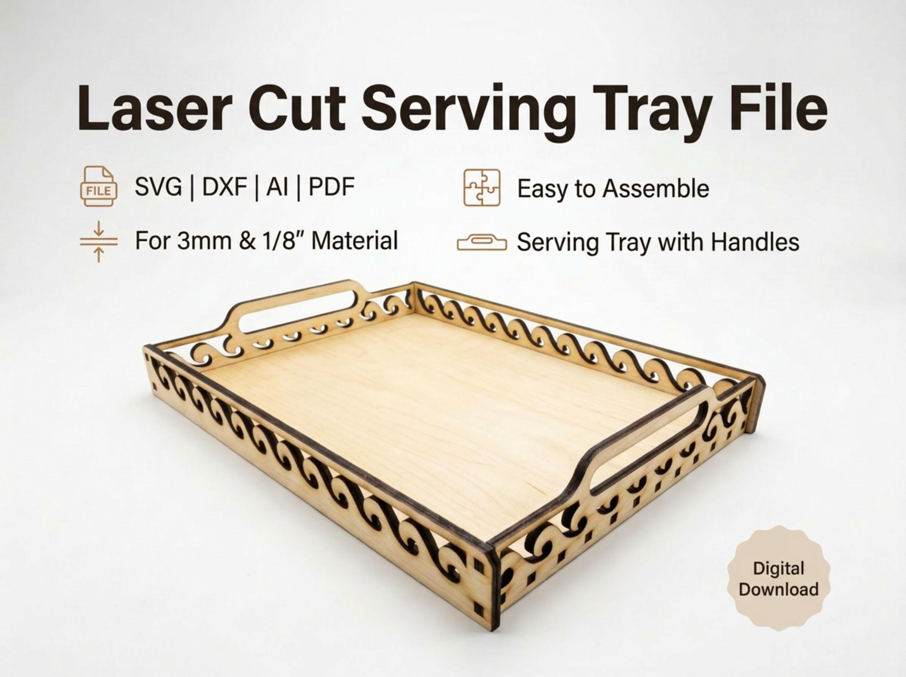 Designed for makers, small businesses, and laser cutting enthusiasts who want to create and sell high-quality wooden trays.