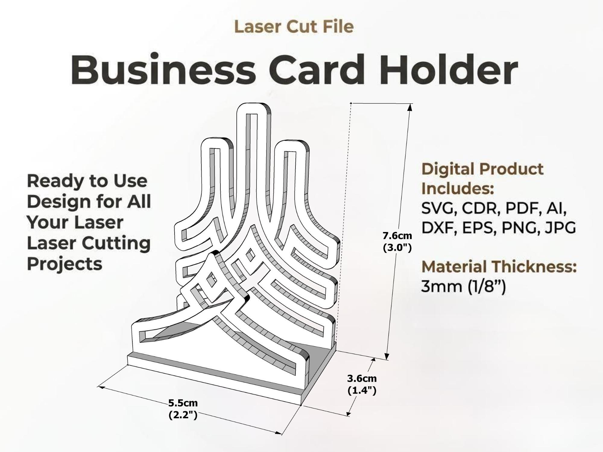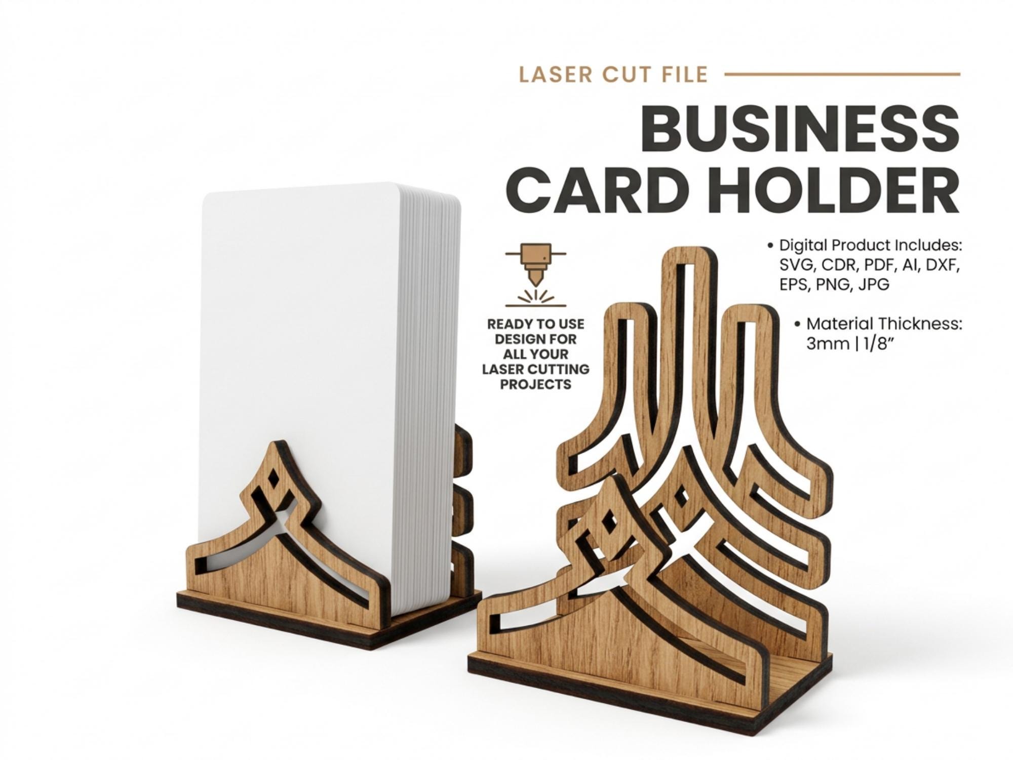 Create a modern and professional workspace with this business card holder laser cut file, designed for precision cutting and easy assembly. This digital design allows you to produce a stylish wooden desk organizer with a clean and elegant look.