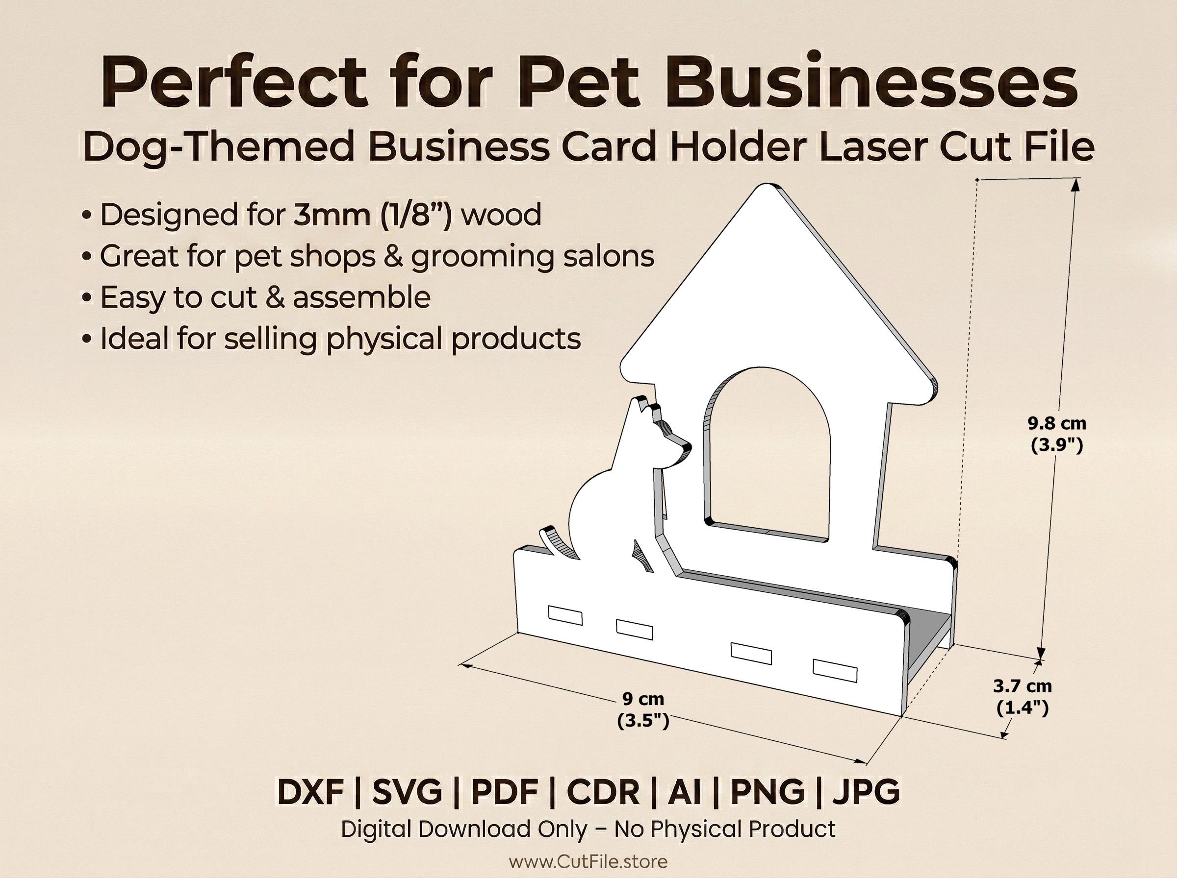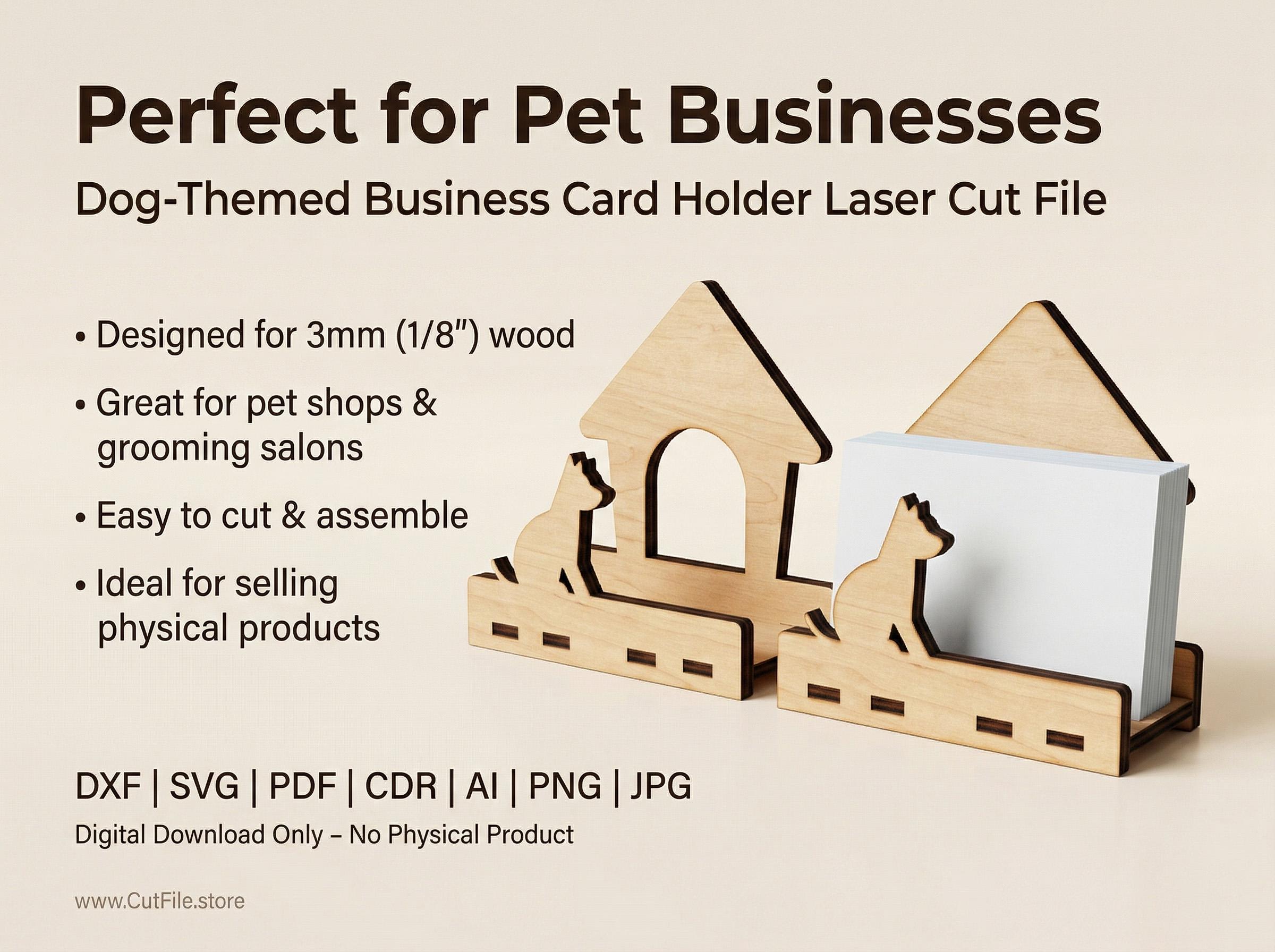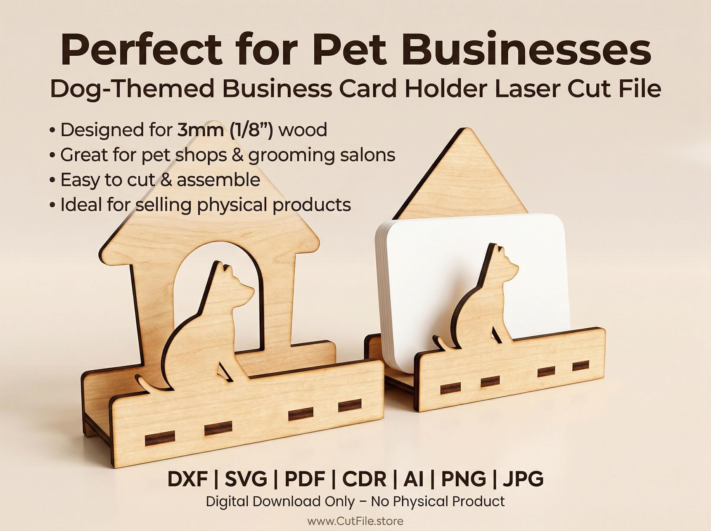 If you are creating products with a laser cutting machine and want something tailored for a specific market, this dog-themed business card holder is a strong option.